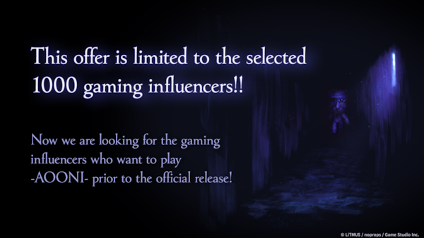 Prior to the release of the game on Fri. 7/26, GameStudio Inc. will be giving away Steam® codes to 1,000 gaming influencers in a drawing. Take this opportunity to experience "Ao Oni" as soon as possible.