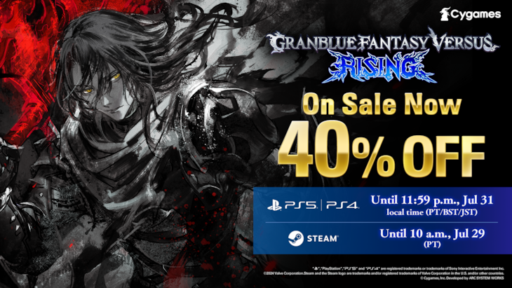 Video game publisher and developer Cygames, Inc. (HQ: Shibuya, Tokyo; President: Koichi Watanabe, hereinafter referred to as “Cygames”) has announced its plans for Evo 2024 in Las Vegas. This includes new details for a booth featuring Cygames’ fighting game, Granblue Fantasy Versus: Rising (GBVSR), which was developed by Arc System Works Co., Ltd., for the PlayStation®5, PlayStation®4, and Steam. Additionally, the company has announced GBVSR is currently on sale at a 40% discount.