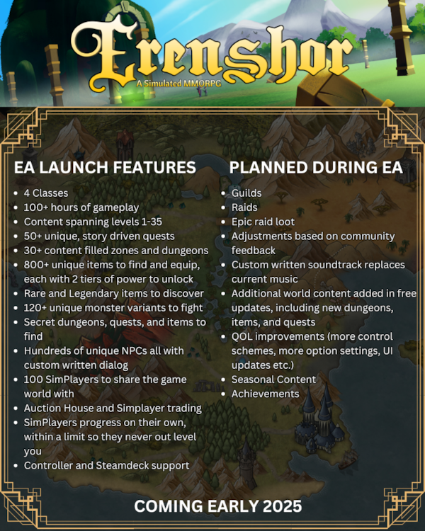 “Early Access is just the beginning—your feedback will help us shape and refine the game into something truly unforgettable. Stay tuned for more updates, and thank you for being part of this journey!” - Brian, Solo developer of Erenshor