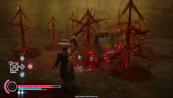 Generates a machine gun out of blood to attack the enemy. While holding down the skill button will allow continuous fire, it will massively deplete your blood level.